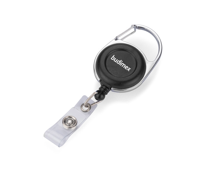 Wykonany z tworzywa skipass z metalowym zaczepem i karabińczykiem z wysuwaną linką, na której zawiesić można identyfikator lub inny dokument.
