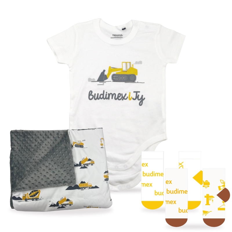 W zestawie znajduje się miękki i przytulny kocyk, klasyczne body oraz urocze skarpetki. Całość zapakowana jest w bawełnianą torbę w kolorze żółtym z długimi uszami, którą można wykorzystać ponownie – praktyczne i ekologiczne rozwiązanie.